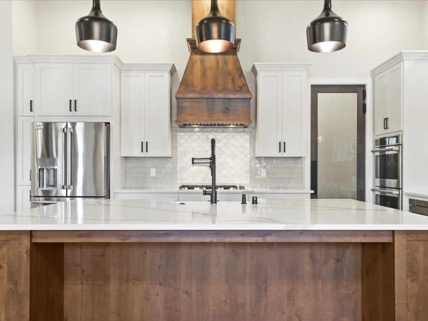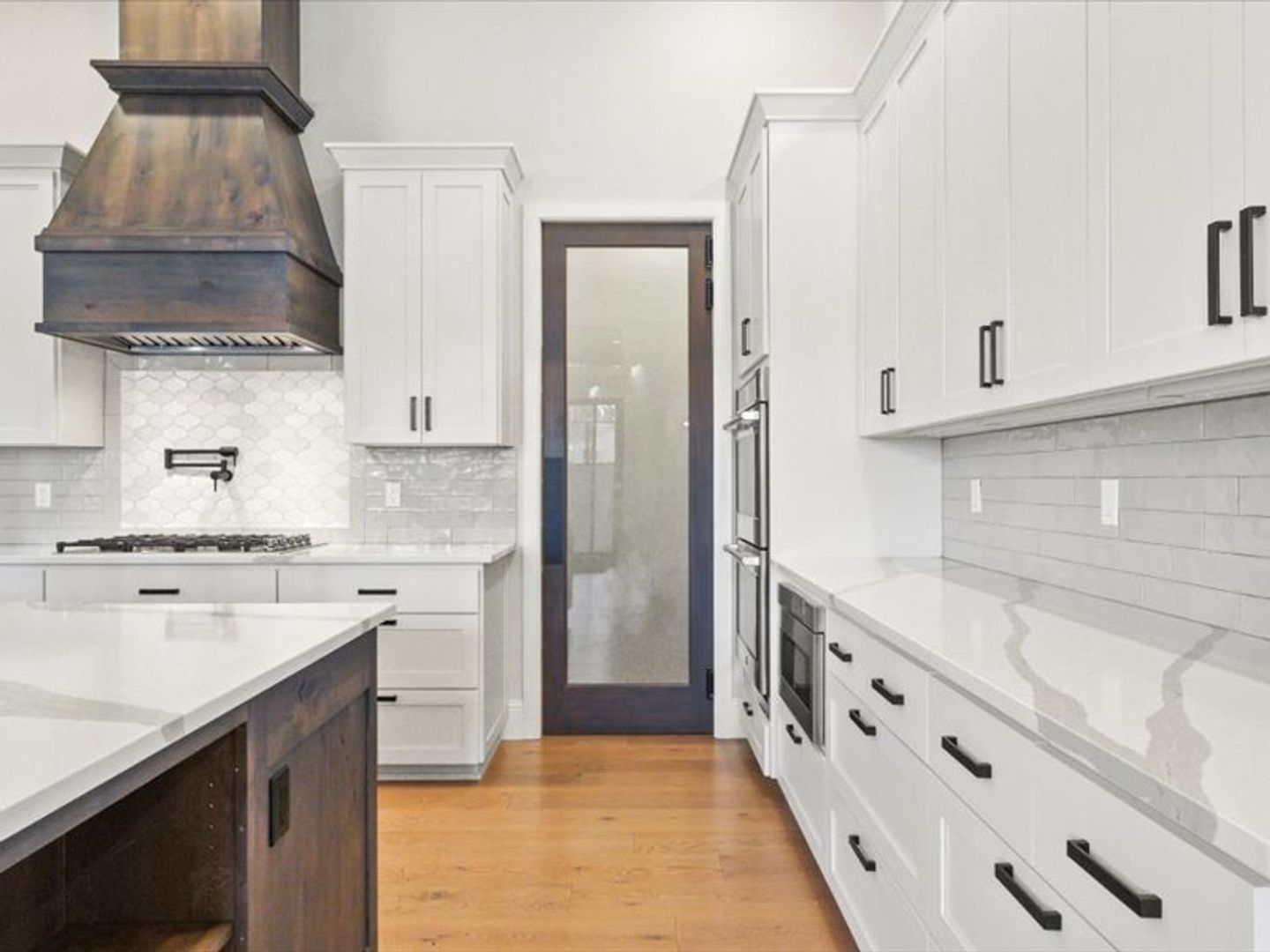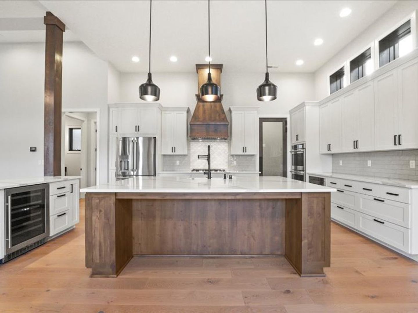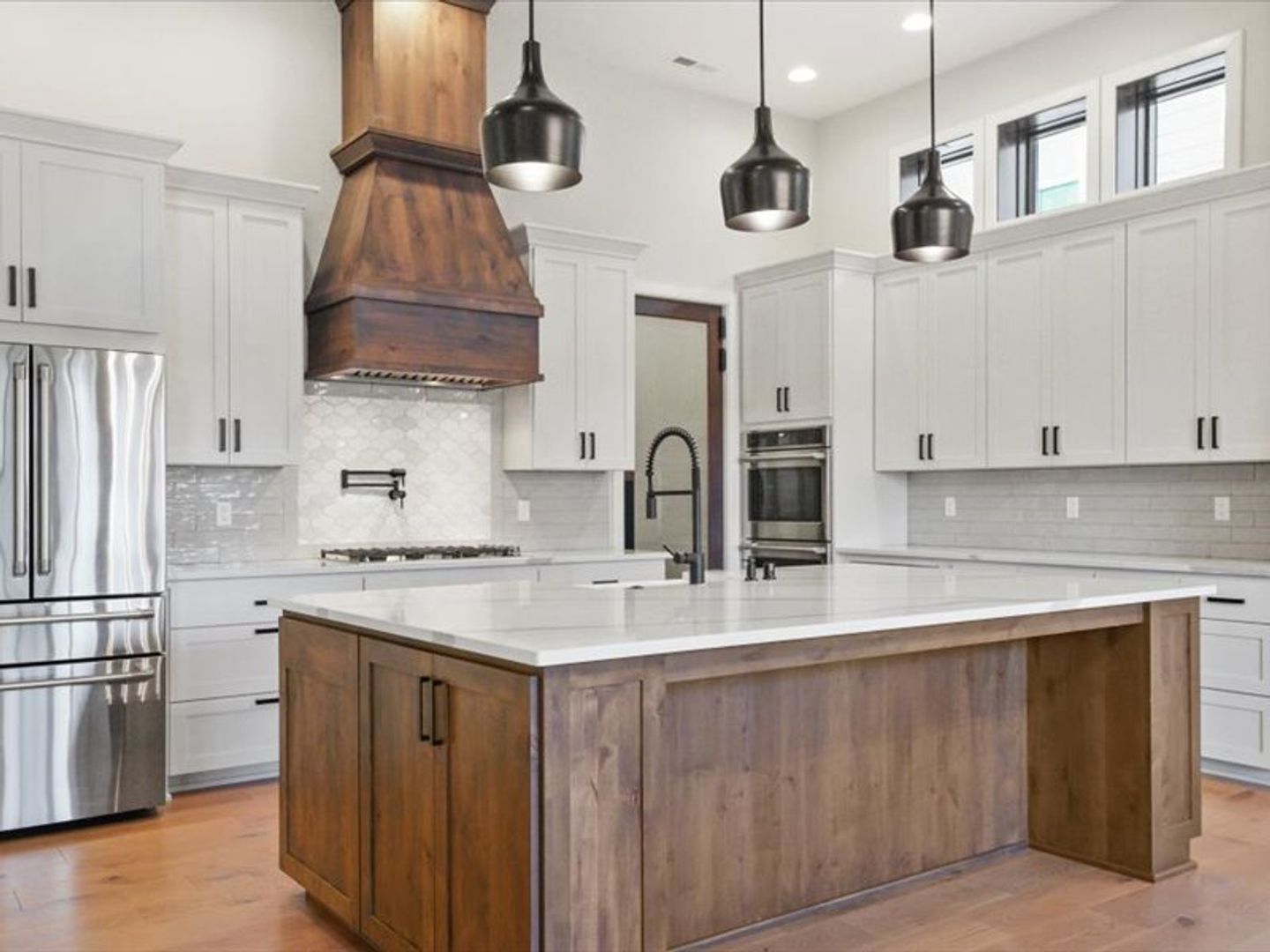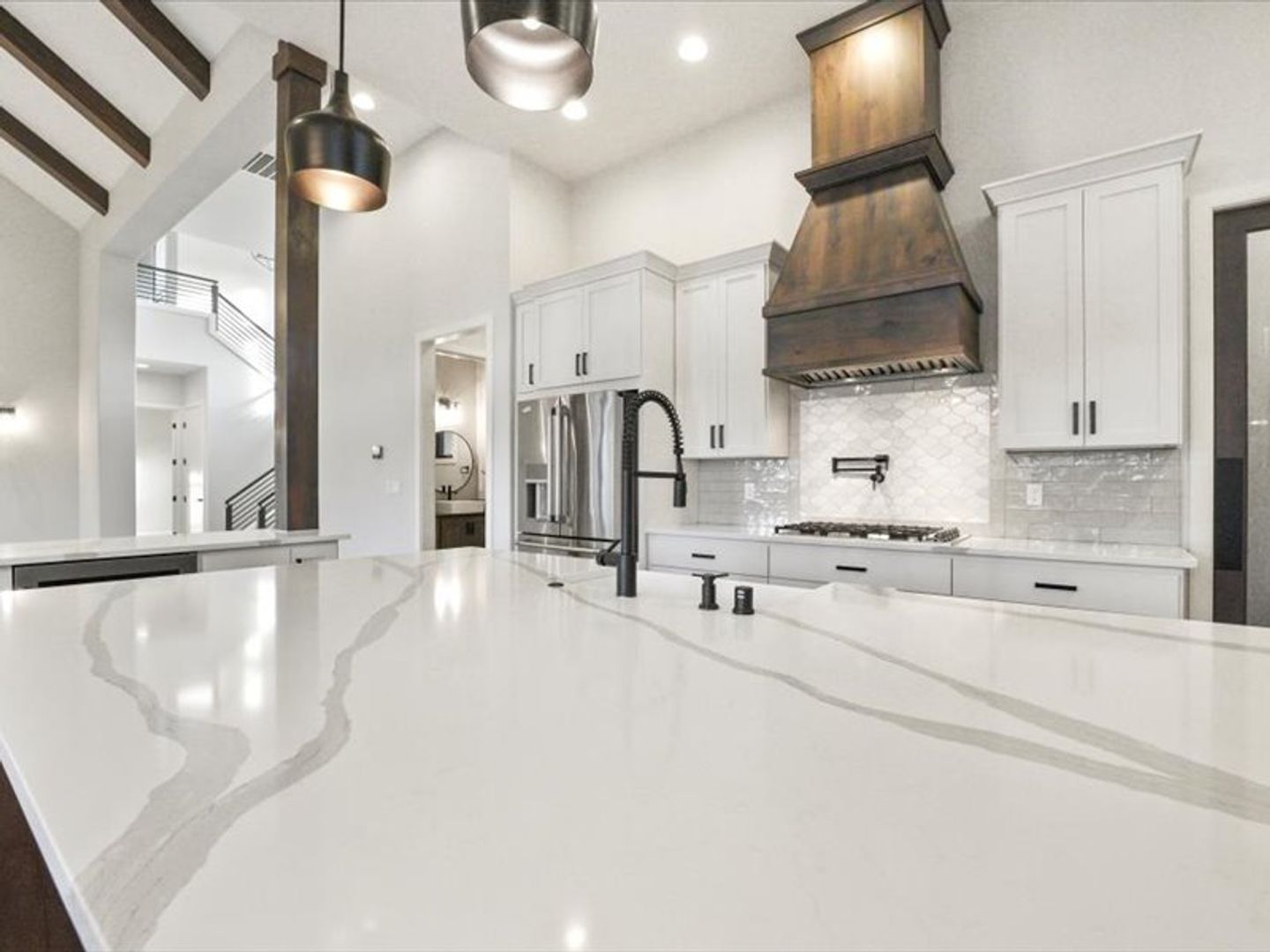 The chef-inspired kitchen boasts top-of-the-line appliances and quartz countertops, with ample storage space in the pantry. A convenient main-floor layout includes a half bath, an office, and a luxurious primary suite with dual walk-in closets and a spa-like bathroom.