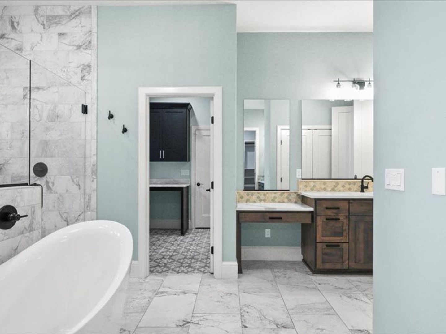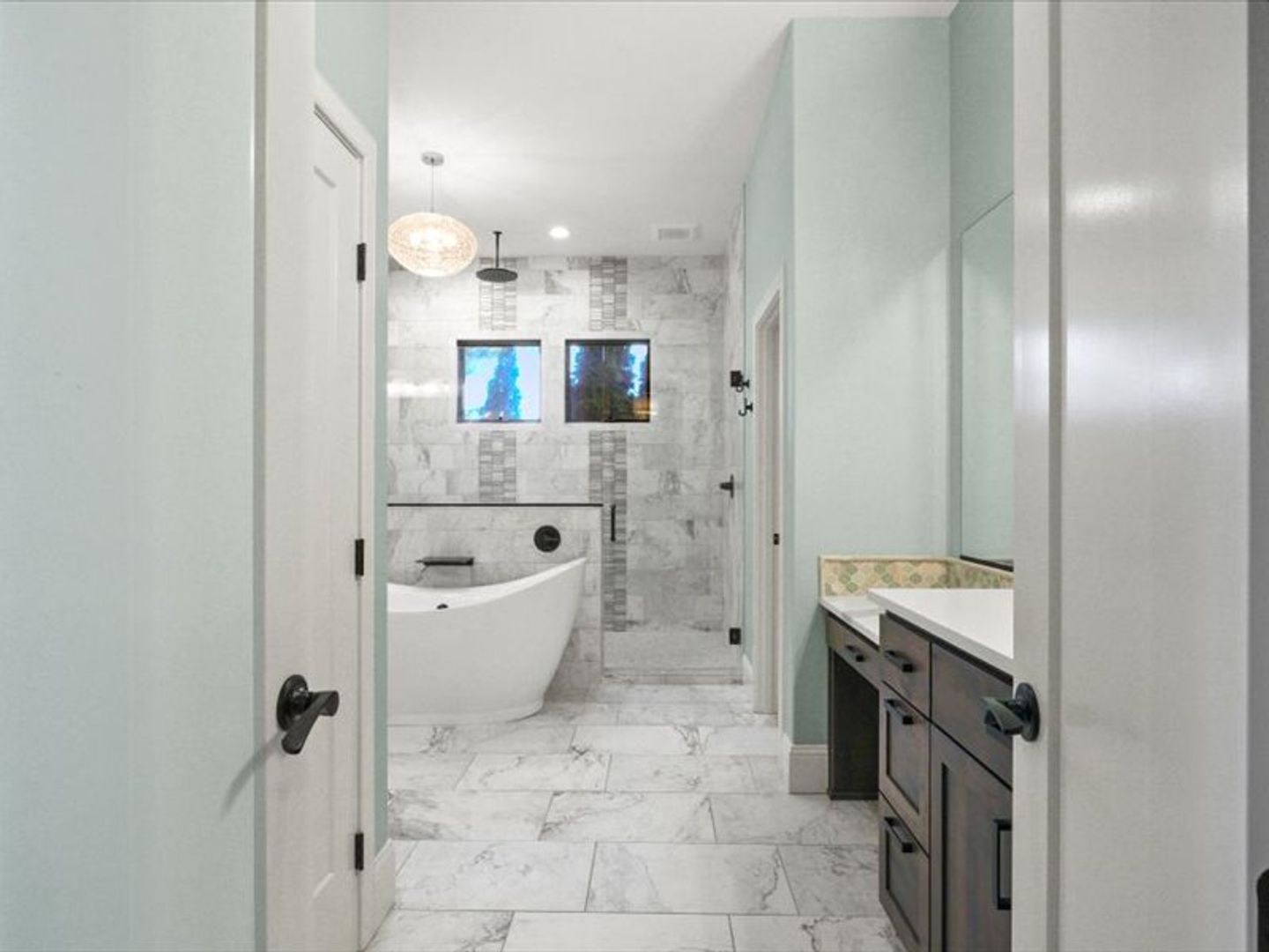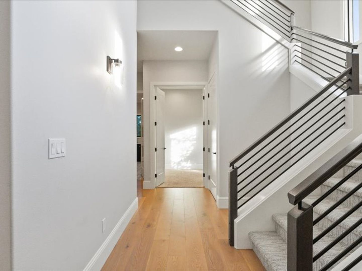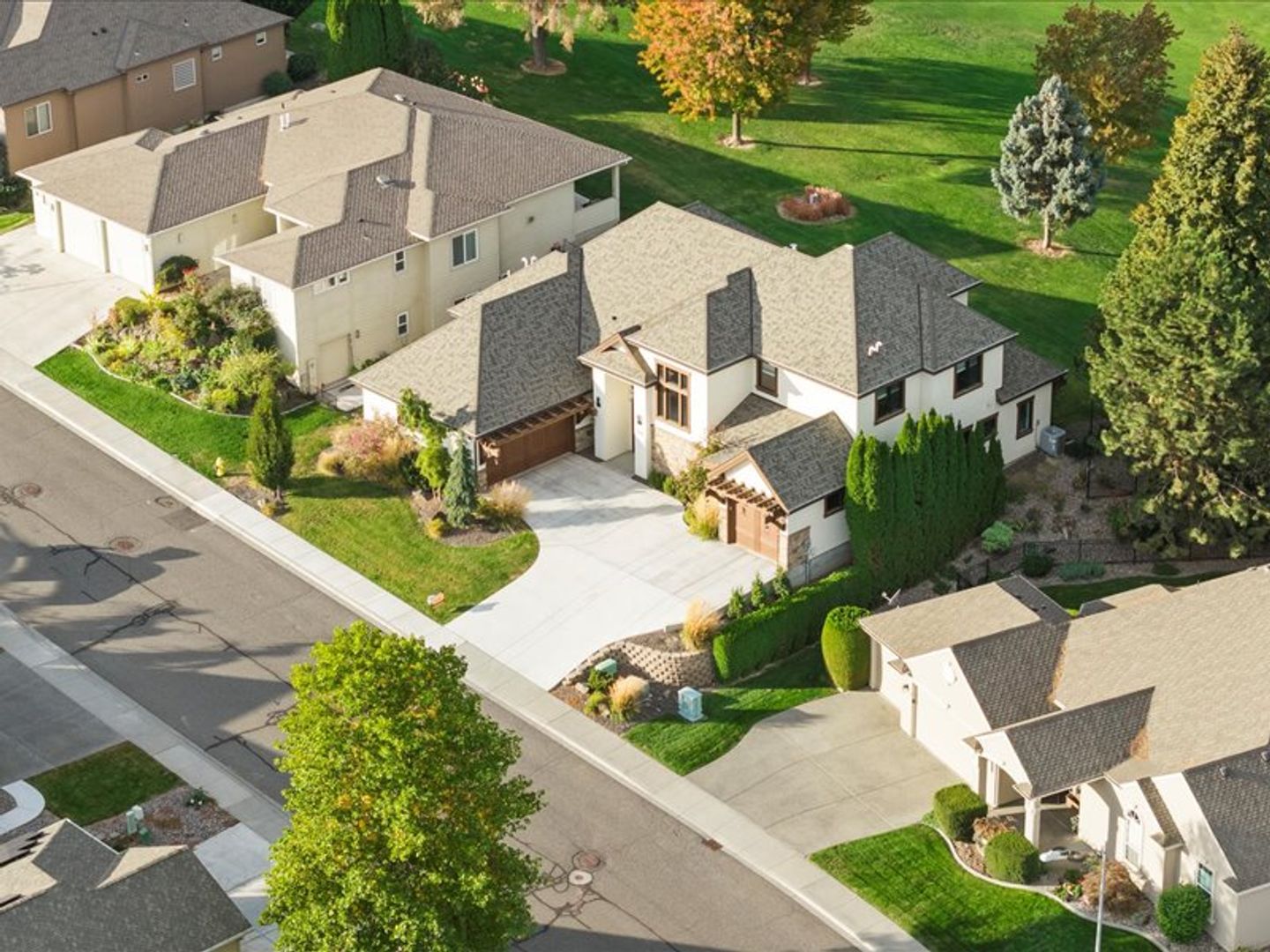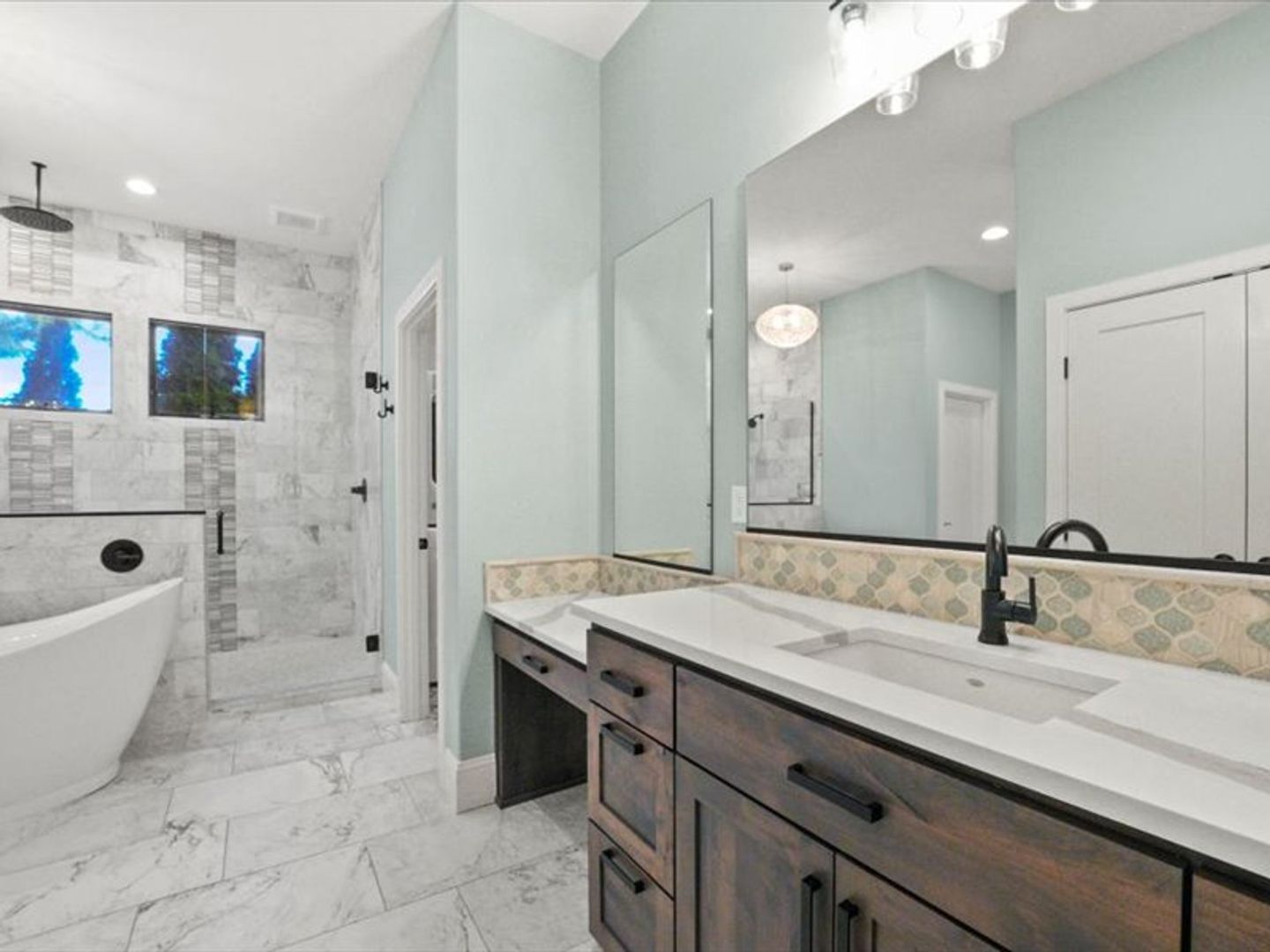 The chef-inspired kitchen boasts top-of-the-line appliances and quartz countertops, with ample storage space in the pantry. A convenient main-floor layout includes a half bath, an office, and a luxurious primary suite with dual walk-in closets and a spa-like bathroom.